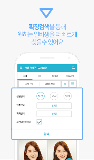 - 확장검색을 통해 성별, 연령, 학력별로 상세 검색 가능