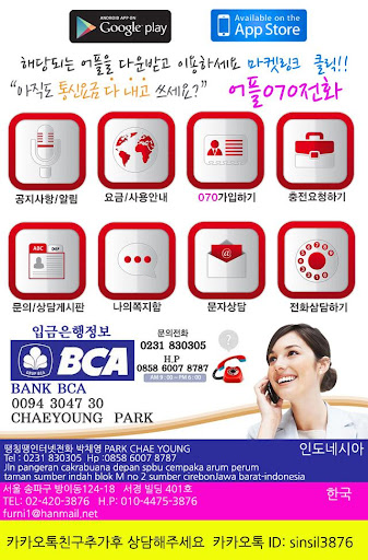 인도네시아 교민과 한국내 스마트폰 사용자를 위한 070전화 어플070인터넷전화입니다.