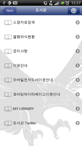 5. 도서관 : 소장자료 검색, 열람좌석 현황 조회, 각종 도서관 이용 안내, 대출도서 조회/연장 등 도서관 이용에 필요한 각종 서비스 제공