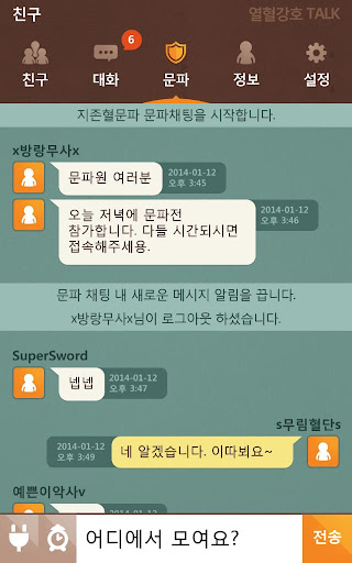 열혈강호의 친구들과 문파원들에게 언제 어디서나 보다 편리하게 인사를 나누고 대화하여 보세요.