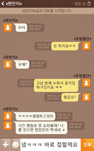 안드로이드 폰을 이용하여 장소에 구애받지 않고 어디서나 무료로 즐길 수 있도록 해주는 메신저 서비스입니다.