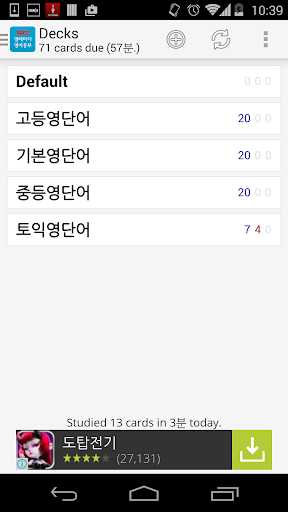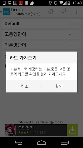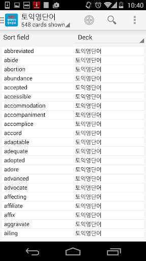 기본, 중등, 고등, 토익 단어가 제공됩니다.