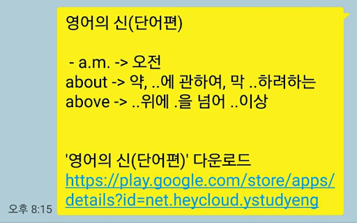▶ 터치SEND : 터치저장을 통해 저장된 숙어들을 카톡, 메일등 다른 어플을 보내실수 있습니다.