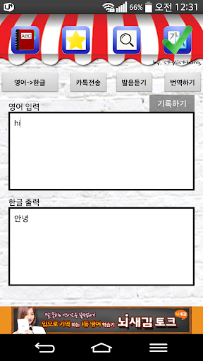 한국어를 영어로 직접 번역하여 영어 발음도 들어보고 한국어 발음도 들어보고 카톡으로 친구들과 공유한다.