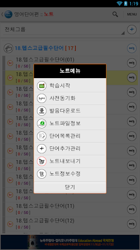 기본적으로 원어민 발음은 동기화를 통해 다운로드 하셔야 하며,