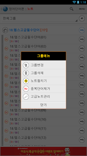 노트를 나누고 합치고 단어를 이동하고 복사하는 등의 고급관리 기법 적용하였습니다.