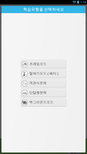 프레임 모드 / 백그라운드 모드 / 객관식 문제 풀이 / 단답형 문제 풀이 등 다양한 학습방법