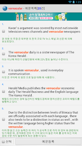 각 단어별 예문을 가져와서 대표 예문을 설정 할 수 있고. 대표예문은 단어목록에 노출됩니다.