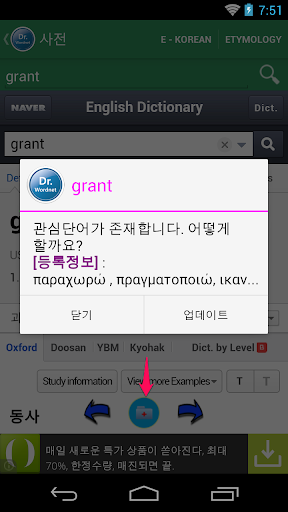- 어원검색과 영영사전 화면에서 역시 원터치 인스턴트 팝업사전이 작동합니다.