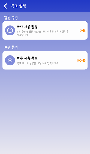 - 하루 동안 데이터 사용량, 목표 사용량 비교 보기
