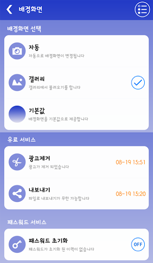 - 데이터 Excel로 내보내기, 암호설정, 배경화면 선택 가능