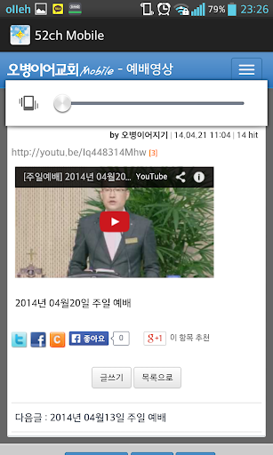 오병이어교회 모바일은 교회소개, 인터넷방송, 친교와나눔, 52뉴스, 52컨텐츠의 메뉴로 이루어져 있으며
