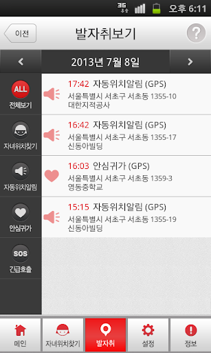 - 자녀위치찾기 : 자녀의 현재 위치를 확인 할 수 있습니다.