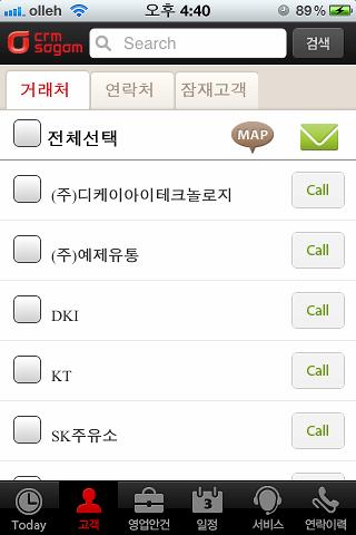 올레bizCRM(Web버전) 사용자 대상 Mobile SFA 구축을 통한 영업 경쟁력 확보를 위한 서비스입니다.