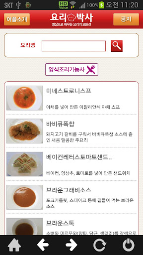 양식조리기능사실기를 배울 수 있도록 제작된 안드로이드용 어플이다.