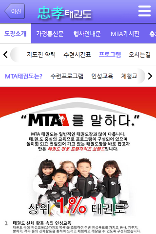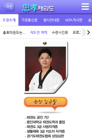 스마트시대를 맞이하여 용인대충효태권도장에서는 모바일홈페이지를 신설