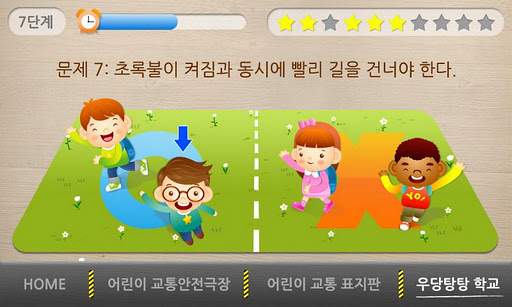 [우당탕탕 어린이 교통안전짱]은 ㈜비앤디가 한국소비자원 소비자안전센터 「어린이 안전넷」의 협조를 받아 제작한 ‘어린이 교통안전교육’을 위한 무료 어플리케이션입니다. (App내 결제 없음)