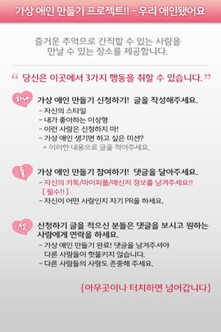 ex) 우리 애인됐어요 어플에서 봤어요. 괜찮은 사람이신것 같아서 그런데요. 가상 애인 한번 되볼래요?