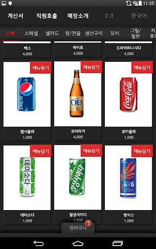 - 설명 : 메뉴판과 주문서가 합쳐진 개념으로, 고객이 메뉴탭으로 주문서를 작성하여 종업원에게 전달하는 형태로 운영됨