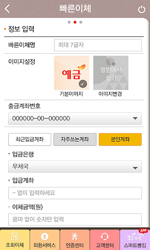 - 계좌조회, 빠른이체, 즉시이체, 이체결과조회, 자주쓰는 입금계좌 서비스 제공