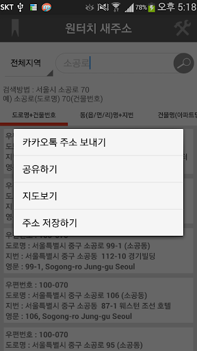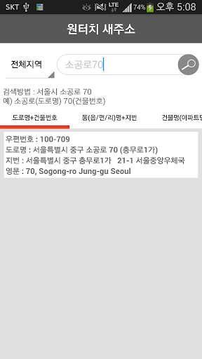 도로명 주소(새 주소)를 검색 손쉽게 검색 할 수 있습니다.