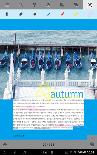 6. 메모 : 색깔별 포스트잇 기능의 텍스트 메모는 검색도 가능합니다. 또한 음성 메모를 통해 그 페이지마다 필요한 정보나 내 감상을 녹음해보세요.