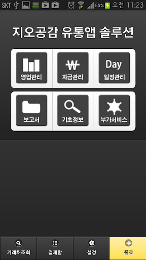 유통회사의 영업관리, 자금관리, 일정관리, 기초관리, 각종 보고서현황 기능이 포함되어 있으며,