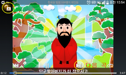 5. 잠금 기능 : 동요 재생시, 아이가 스마트폰을 터치해도 끊기는 일 없이 계속 감상 가능.