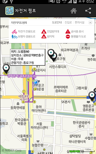 ※ 서울시에서 제공해주는 데이터에는 자전거 펌프의 위치가 좌표가 아닌 주소로만 제공되기에 현재 표시되는 위치는 정확한 위치가 아닌 근사치 입니다. 참고용으로 사용 부탁드리겠습니다.