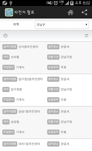 - 내 현재위치 또는 지역구별 [자전거 펌프]의 위치정보를 보여줍니다.