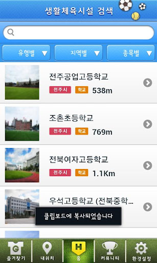 "전라북도 생활체육 안내 서비스 어플리케이션"