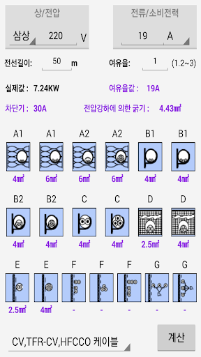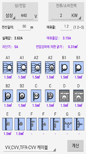 전선 굵기 계산기 어플입니다.