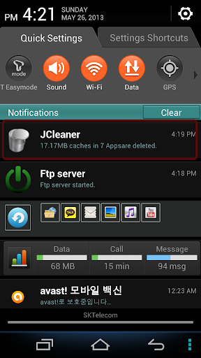 제이 클리너는 앱 캐시파일을 삭제하는 간단한 도구입니다.