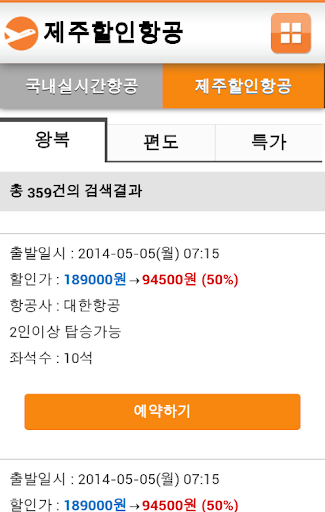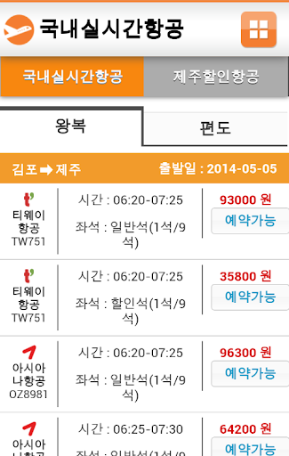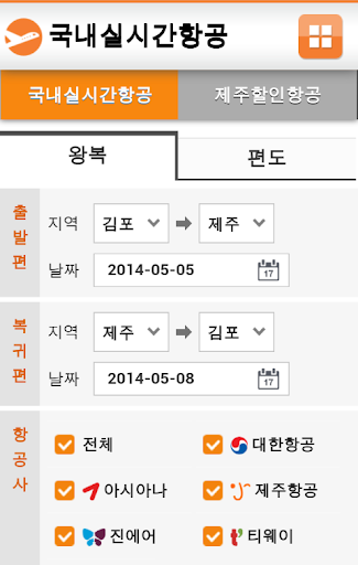 - 실시간 국내선 검색 및 결제 기능, 국내 최저가