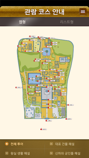 전체 투어, 대표 건물 해설, 왕실 생활 해설, 신하와 궁인들 해설