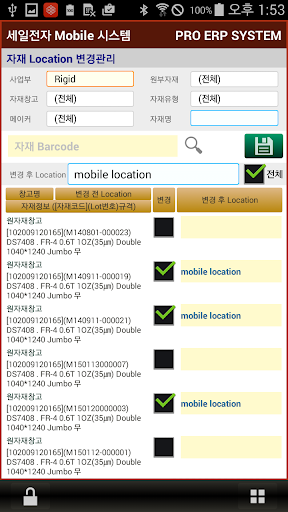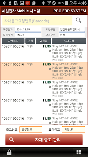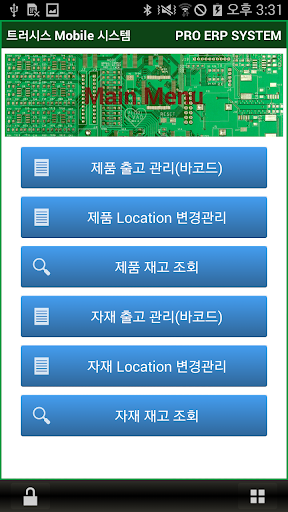 PCB용 ERP Mobile 버전에서는 급변하는 업무변화에 능동적인 대응체계 구축으로 효율적인 업무의 연속성을 확보하고자 기존 사용중인 ERP 시스템에서 현재 작업중인 내용을 Mobile로 확인하기 위하여 스캐너를 활용하여 바코드를 스캔한 후 제품 및 자재의 출고 작업 등을 처리하고, 제품 및 자재의 창고별 재고를 어디에서나 조회하는 기능을 제공한다.