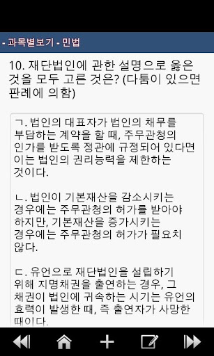 3. 문제화면에서 정답보기 모드로 문제를 풀 수 있습니다. 정답보기 모드는 기초지식이 별로 없는 경우나 처음부터 공부하기를 원하는 경우 문제와 답을 외우면서 시험을 보는 모드입니다. 단순한 지식이나 정의를 암기할 때는 유용할 것으로 생각됩니다.