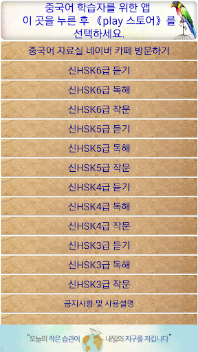 본 카페에서는 신HSK,BCT,HSK,중국어,일본어,영어,병음,발음,회화,독해,단어,듣기,쓰기,작문,자격증,유학 과 관련된 정보 및 다양한 앱을 만나실 수 있습니다.