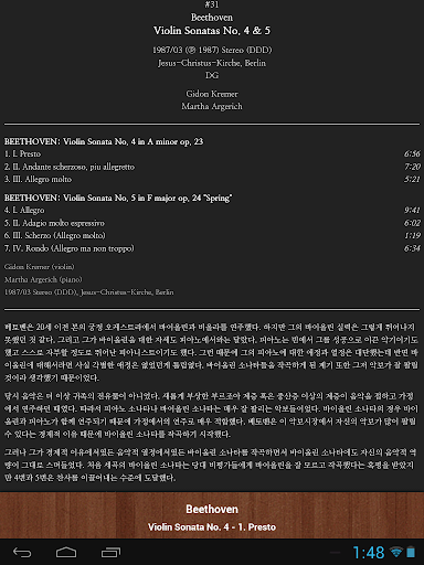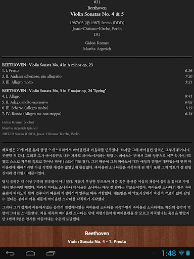 차클래식 채널 플레이어에는 편리한 감상을 위해 전 앨범에 걸쳐, 필요한 모든 정보가 기입되어 있습니다. 앨범해설은 오프라인 구매시 받으신 책자를 이용해 주시기 바랍니다.