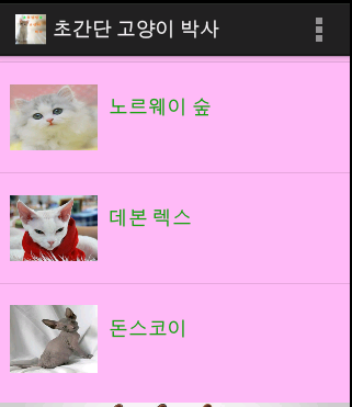 다양한 고양이 품종에 대해 정보를 주는 앱(와이파이 연결이 없어도 정보가 나옵니다.)