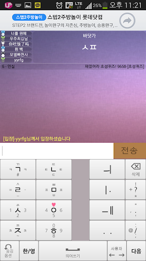 나타나는 초성과 힌트를 보고 정답을 채팅창에 적어서 맞히는 게임!!