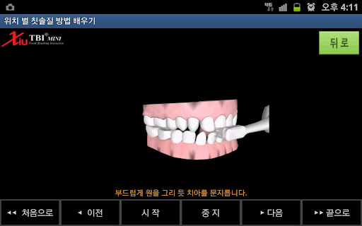 화면에 나오는 동영상을 보면서, 실제로 잇솔질을 따라하면 자연스럽게 칫솔질 방법을 배울 수 있고, 지속적으로 프로그램을 사용할 경우에 자연스럽게 올바른 칫솔질 습관을 익힐 수 있는 간단하면서 효과적인 프로그램입니다.