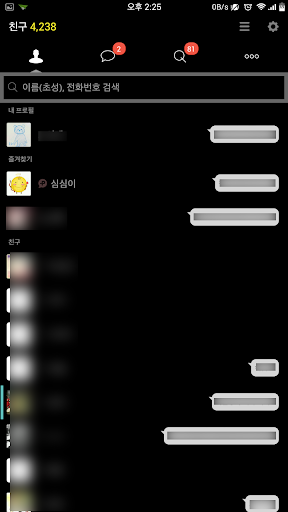 저전력으로 오래 채팅을 즐기실 수 있도록 배경부분을 모두 블랙 (색상값000000)으로 채워넣었습니다.