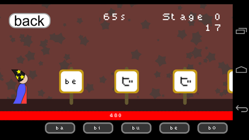 가타카나가 적힌 팻말이 오른쪽에서 왼쪽으로 이동합니다. 발음이 깜박거리며 보이는데, 대머리 마법사에게 다가올수록 점점 더 발음의 보이는 비율이 증가하여 최후에는 절반의 비율까지 보입니다.