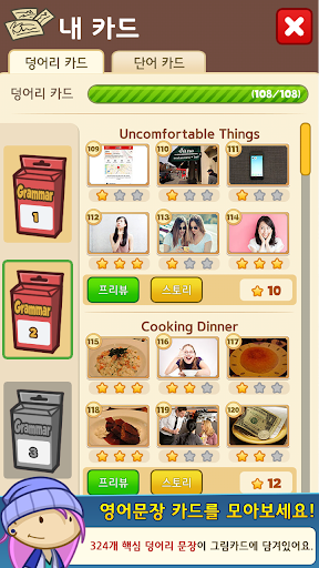 영어문장카드를 수집하는 게임 타입의 학습입니다.
