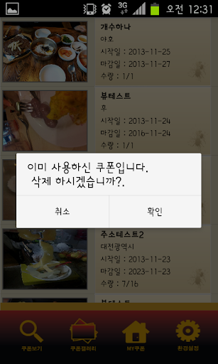 My쿠폰은 내가 받은 쿠폰들을 모아두는 곳이고 쿠폰을 클릭했을시
