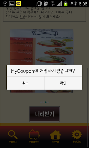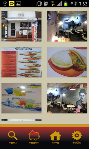 이 어플은 쿠폰 보기, 쿠폰 갤러리, My 쿠폰, 환경설정 화면으로 구성되어져 있습니다.