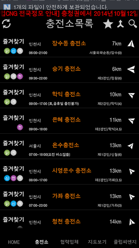 * 충전소 목록; 거리별보기, 검색보기, 즐겨찾기보기