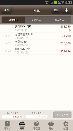 - 카드별 결제예정금액과 사용금액을 바로 확인