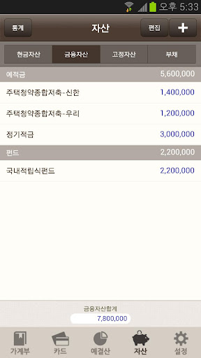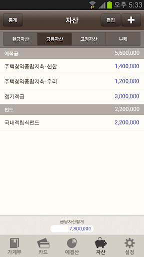 - 한번의 가계부 작성으로 자산관리까지 연동